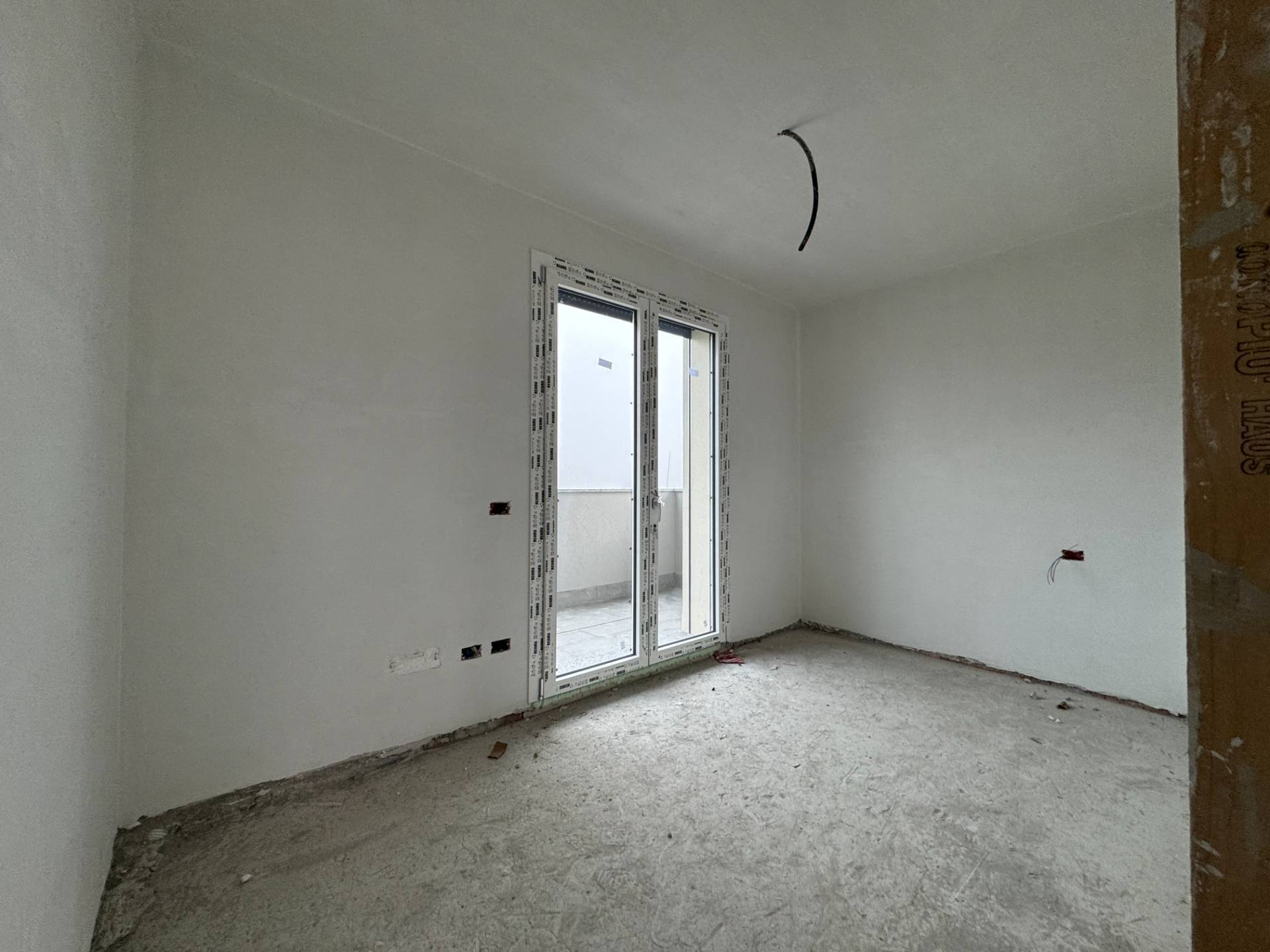 L'appartamento è composto dalla zona giorno Open-Space di buone dimensioni con angolo cucina a vista ed affaccio sul terrazzo. La zona notte è composta dalla camera da letto matrimoniale con cabina armadio, seconda camera da letto, terza camera da letto e bagno.