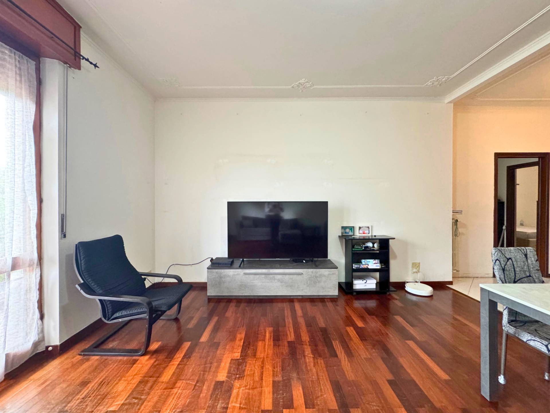 L'immobile è composto dall'ingresso che accede sull'ampia sala collegata al balcone, la cucina è separata ed abitabile con accesso al secondo balcone. Il corridoio conduce alla zona notte composta dalla prima camera da letto matrimoniale con accesso sul balcone, la seconda camera da letto matrimoniale, la terza camera da letto ed il bagno.