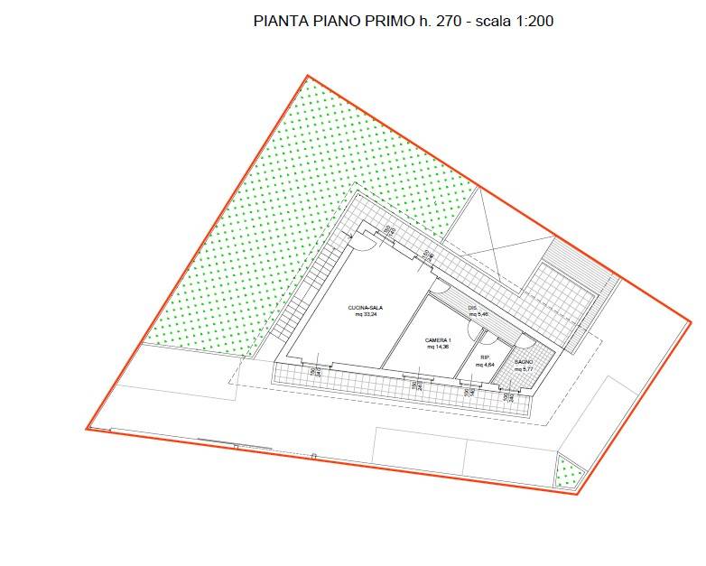 La posizione è buona ed il lotto di terreno ha una metratura di 423,6 mq con una superficie edificabile pari a 211 mq.