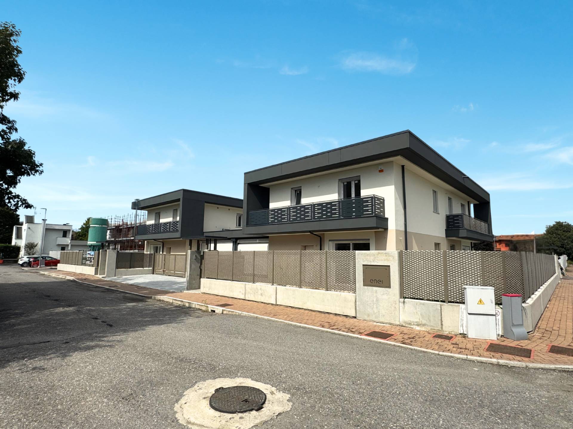 Ital Home propone in vendita ad Azzano San Paolo in prestigioso contesto di nuove realizzazione con ampio spazio verde e ciclabile una villetta bifamiliare indipendente su due livelli con box doppio all'americana