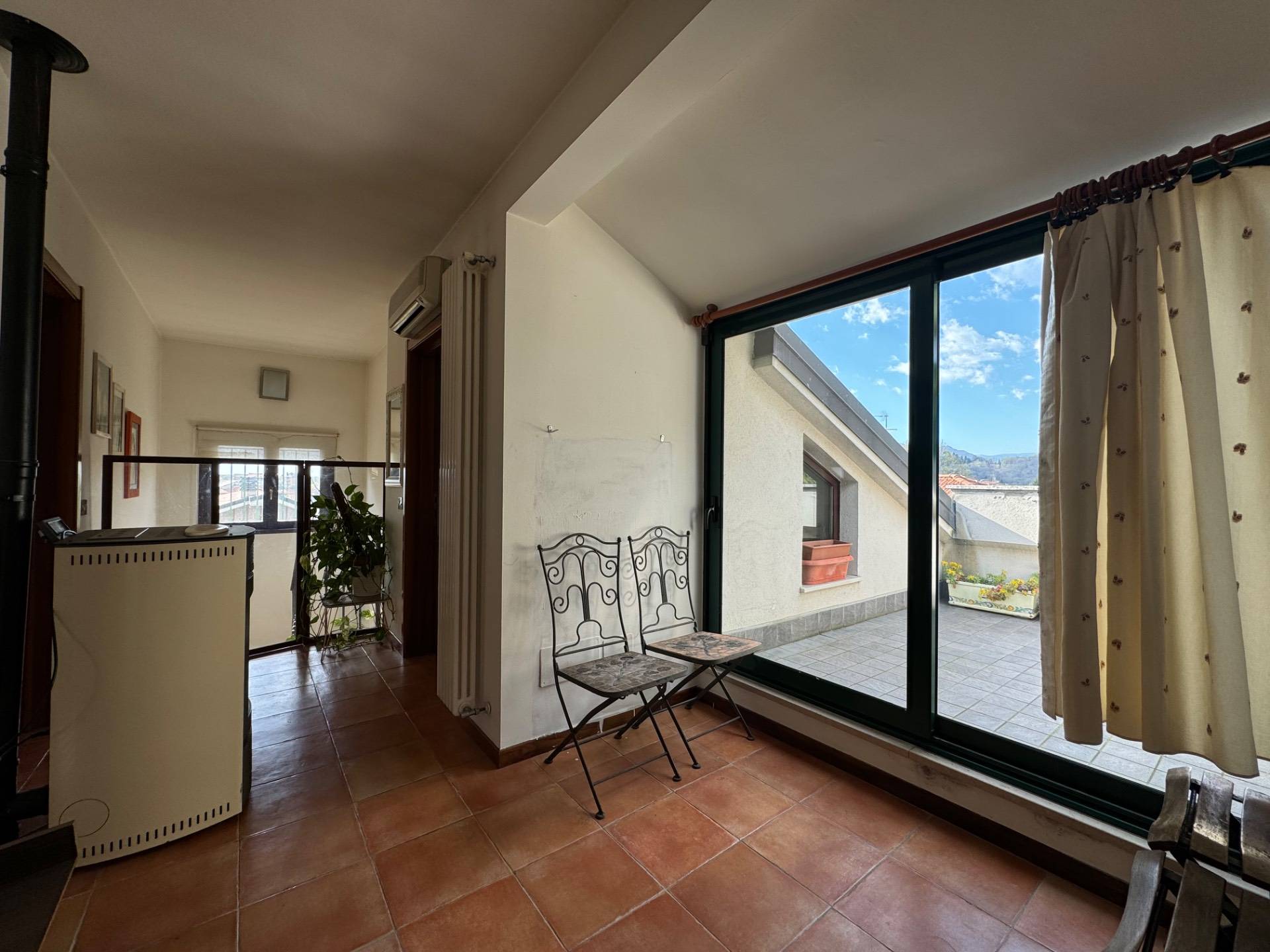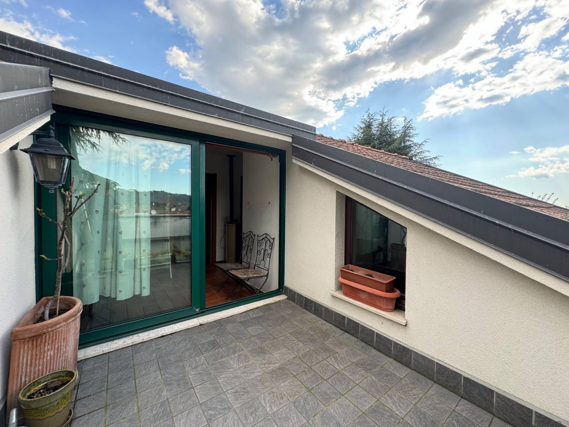 Al piano superiore troviamo la zona notte mansardata composta da 3 camere da letto, un bagno ed un tranquillo e riservato terrazzo con affaccio sui colli.