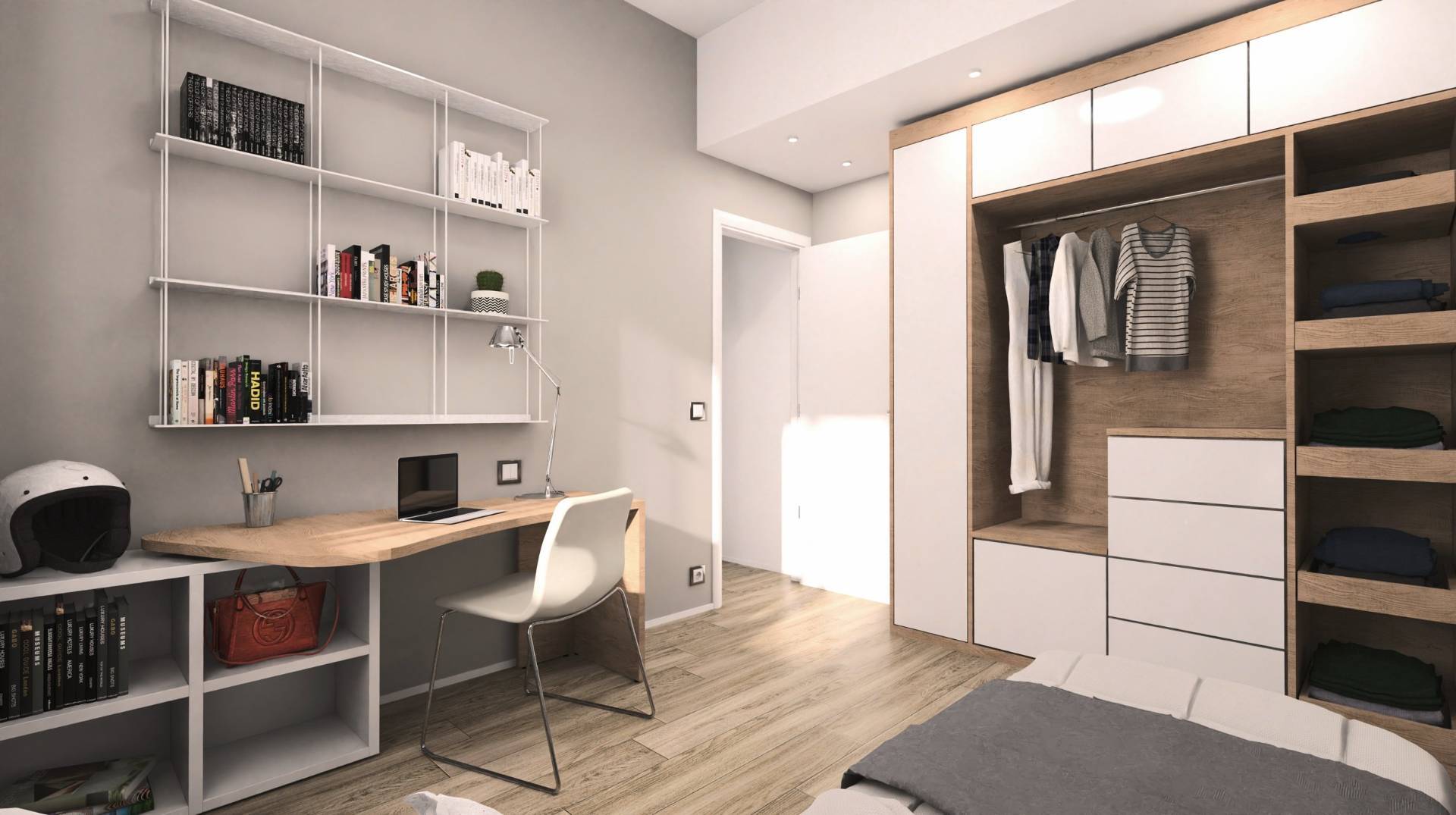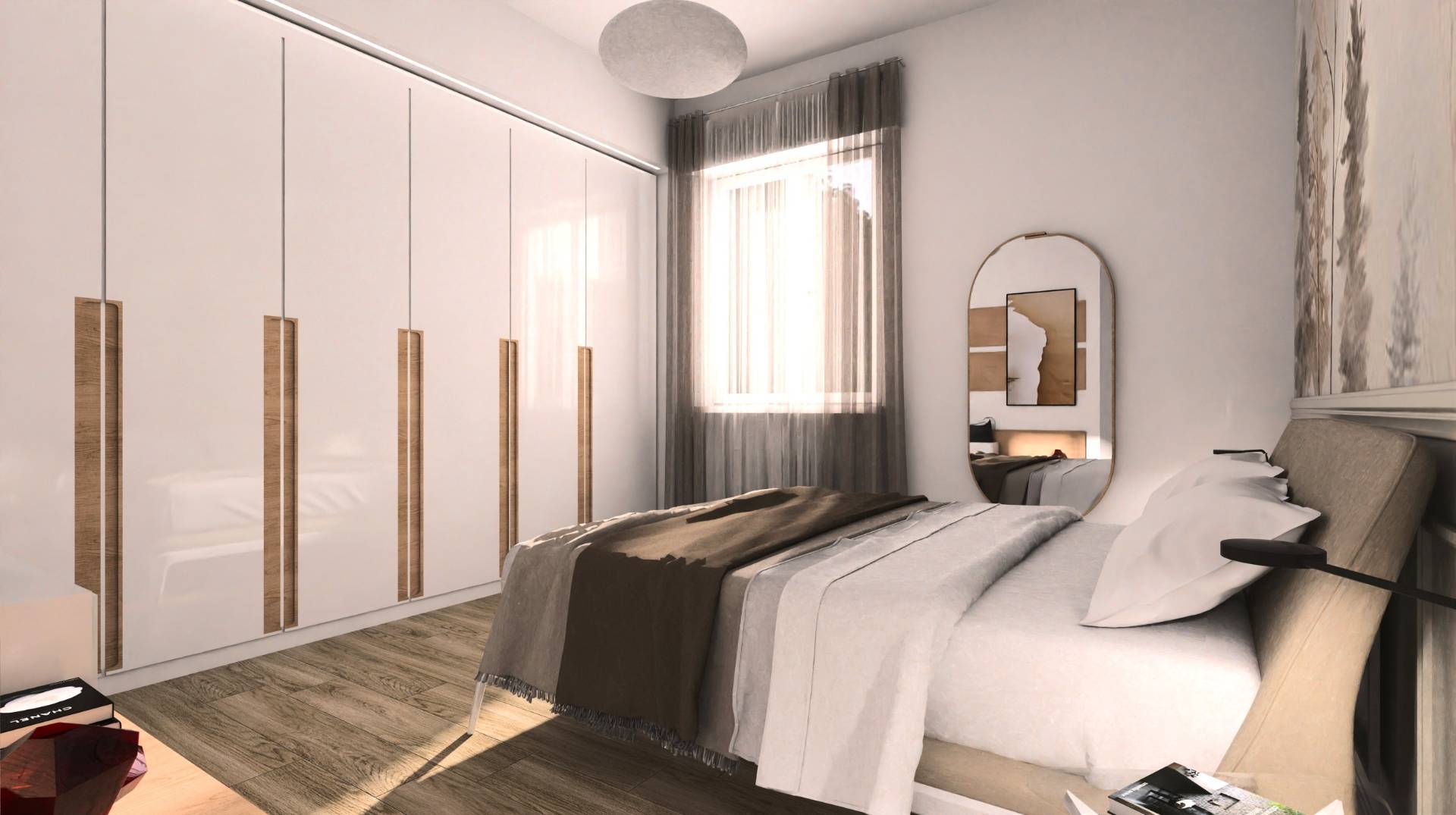 Un elegante disimpegno conduce alla zona notte, composta da una spaziosa camera singola, un bagno moderno e una splendida camera da letto matrimoniale con bagno padronale en-suite. Qui si trova una doccia scenografica in stile hotel di lusso, visibile direttamente dalla camera attraverso una raffinata parete in vetro: un dettaglio di classe che dona ulteriore carattere all'ambiente.