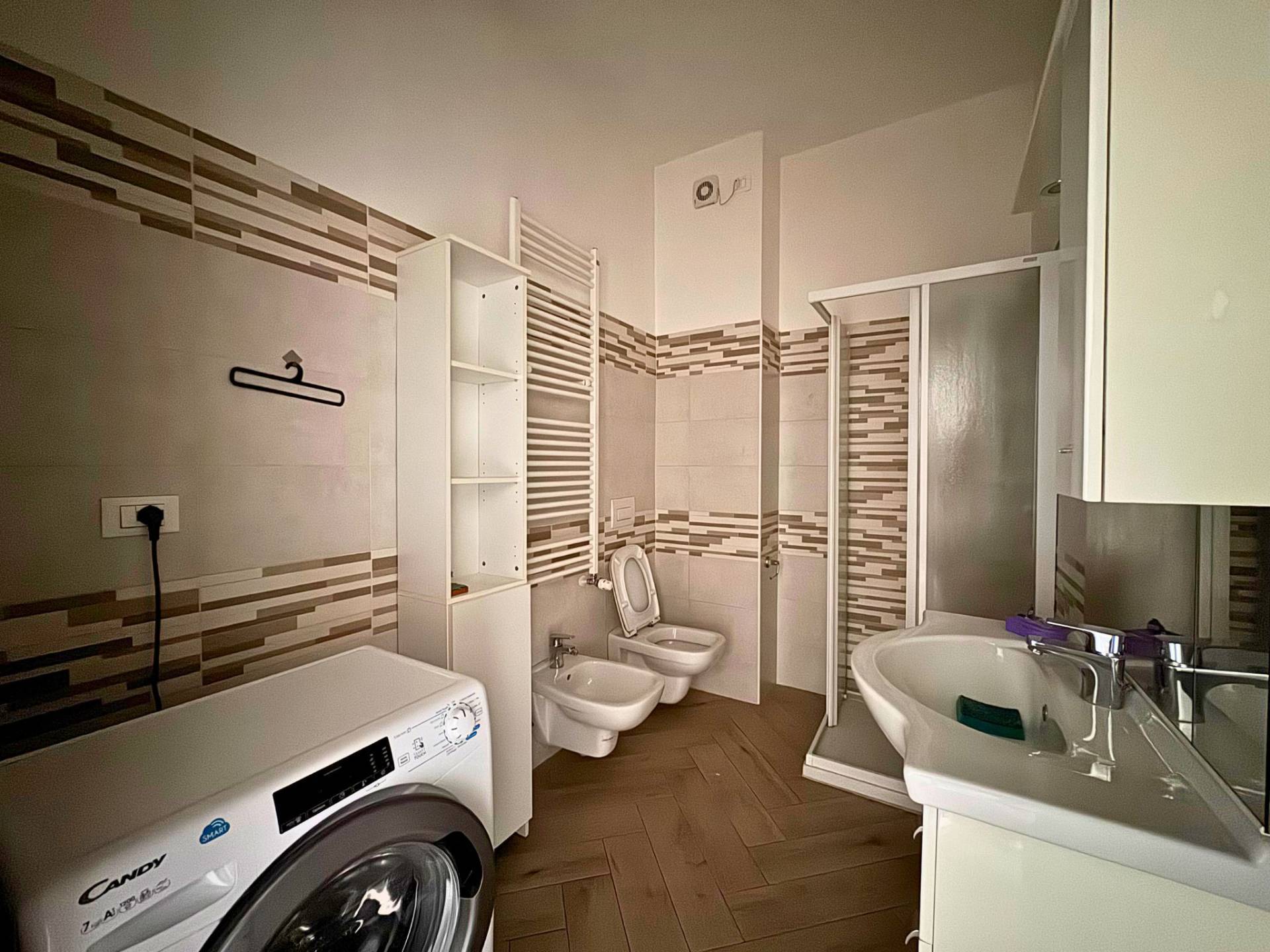 Il disimpegno conduce al bagno non finestrato ma con l'impianto di ricircolo dell'aria che permette il giusto ricircolo dell'aria anche quando si fa la doccia, il bagno è completo di box doccia, sanitari, lavello e lavatrice. Dal disimpegno si accede alla camera da letto matrimoniale di generose dimensioni.