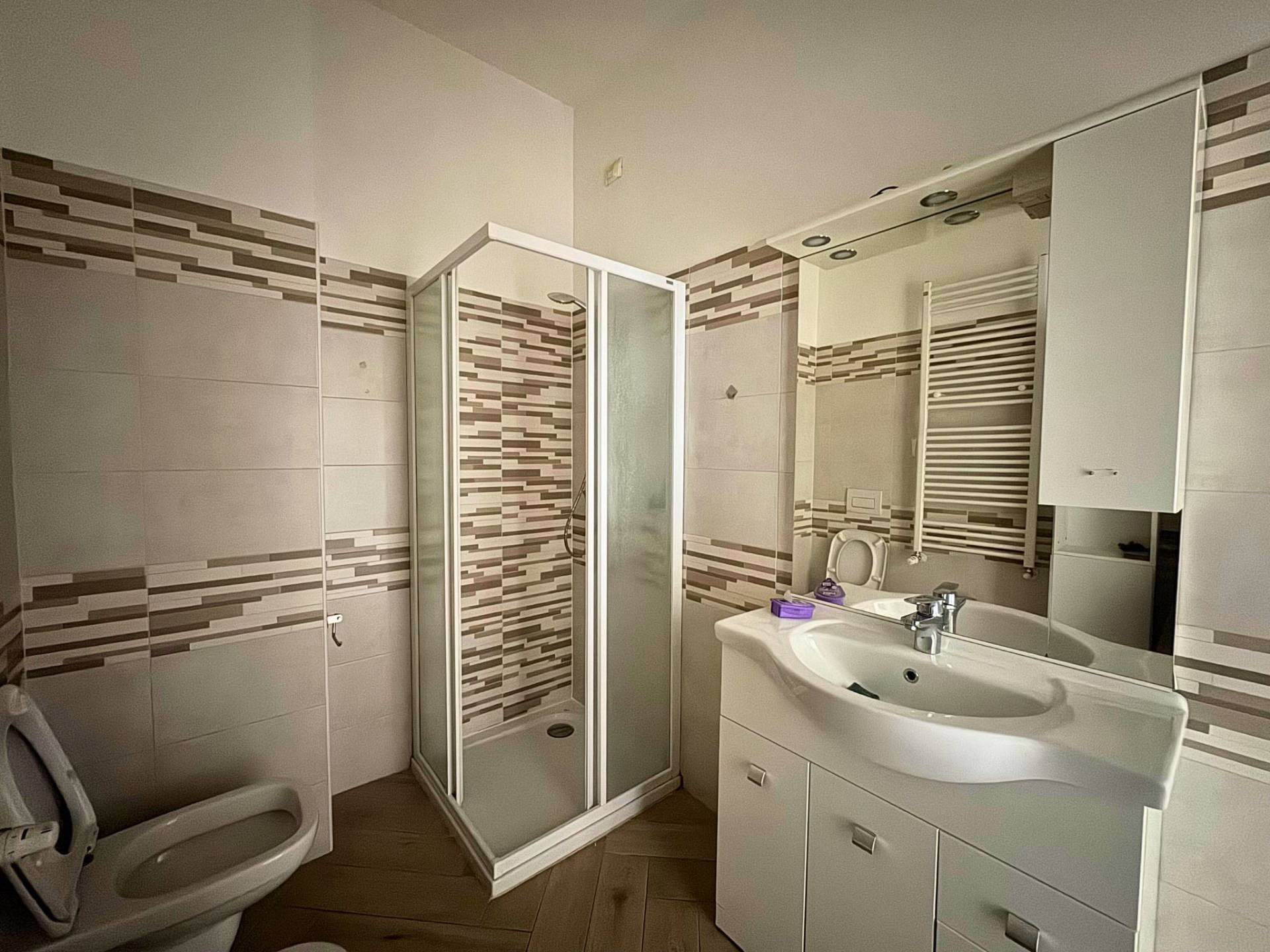 Il disimpegno conduce al bagno non finestrato ma con l'impianto di ricircolo dell'aria che permette il giusto ricircolo dell'aria anche quando si fa la doccia, il bagno è completo di box doccia, sanitari, lavello e lavatrice. Dal disimpegno si accede alla camera da letto matrimoniale di generose dimensioni.