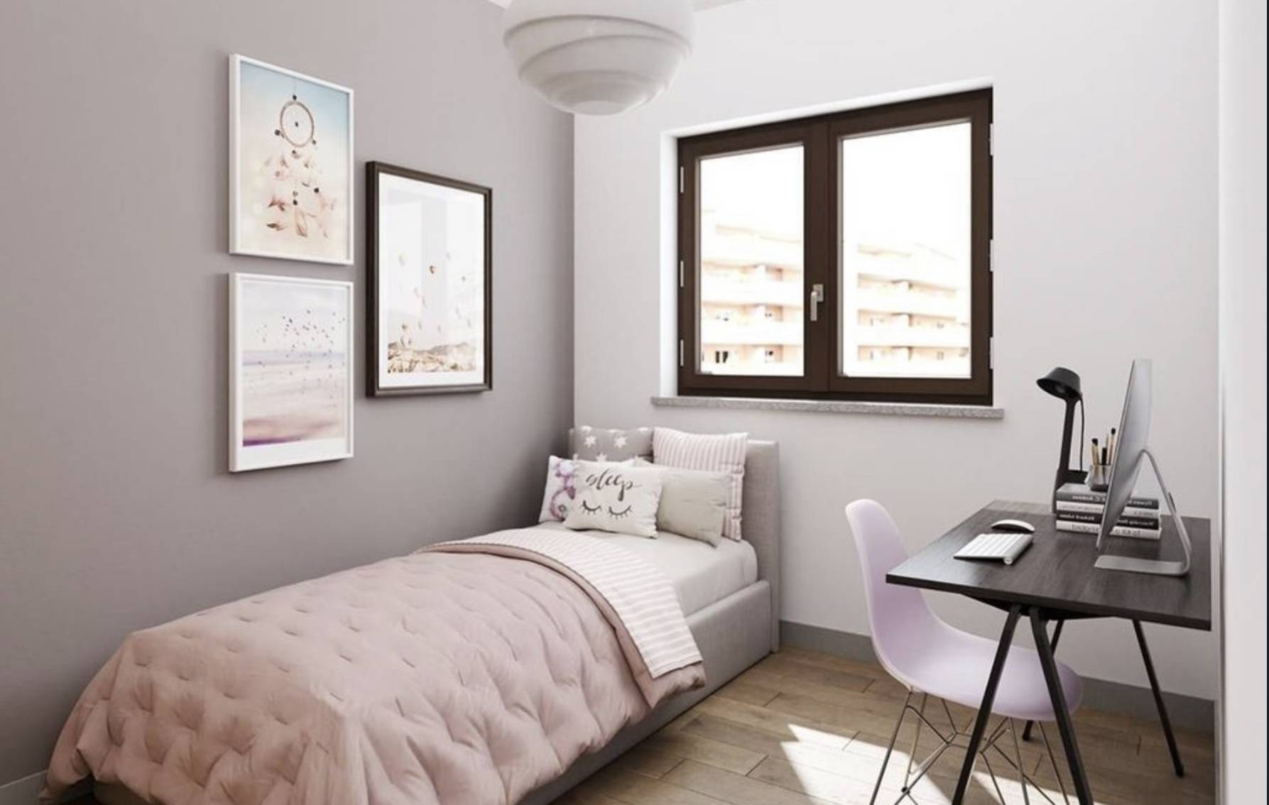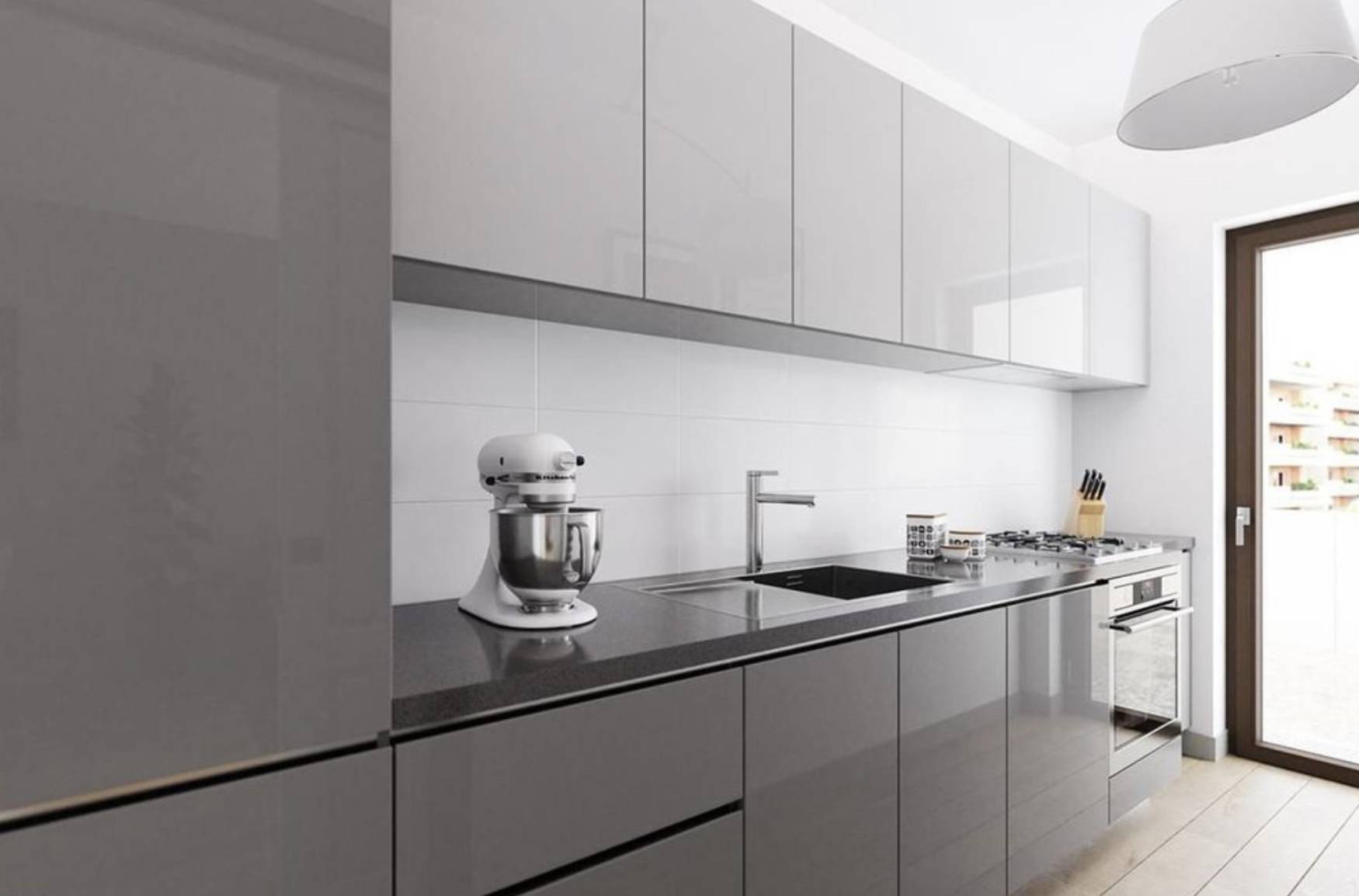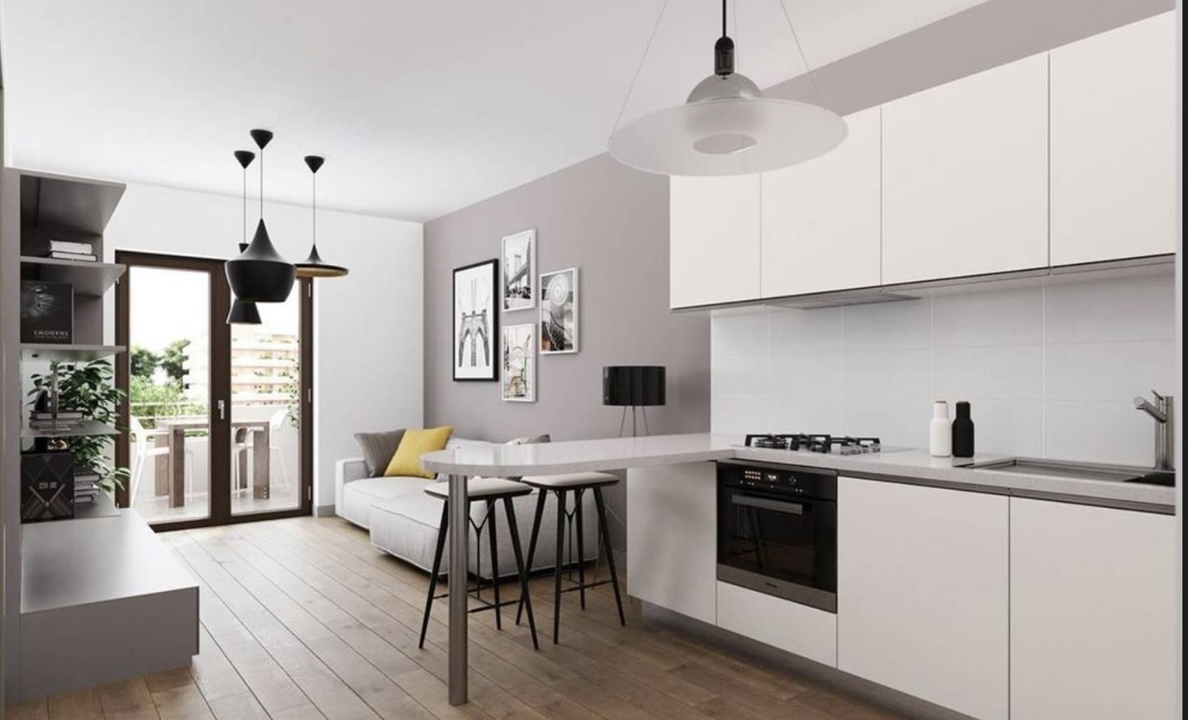 La zona giorno si apre su un soggiorno con cucina a vista, uno spazio conviviale e funzionale, mentre il disimpegno conduce alla zona notte composta da due camere da letto e da un bagno curato. La metratura catastale di circa 90 m²offre equilibrio tra comodità e facilità di gestione.