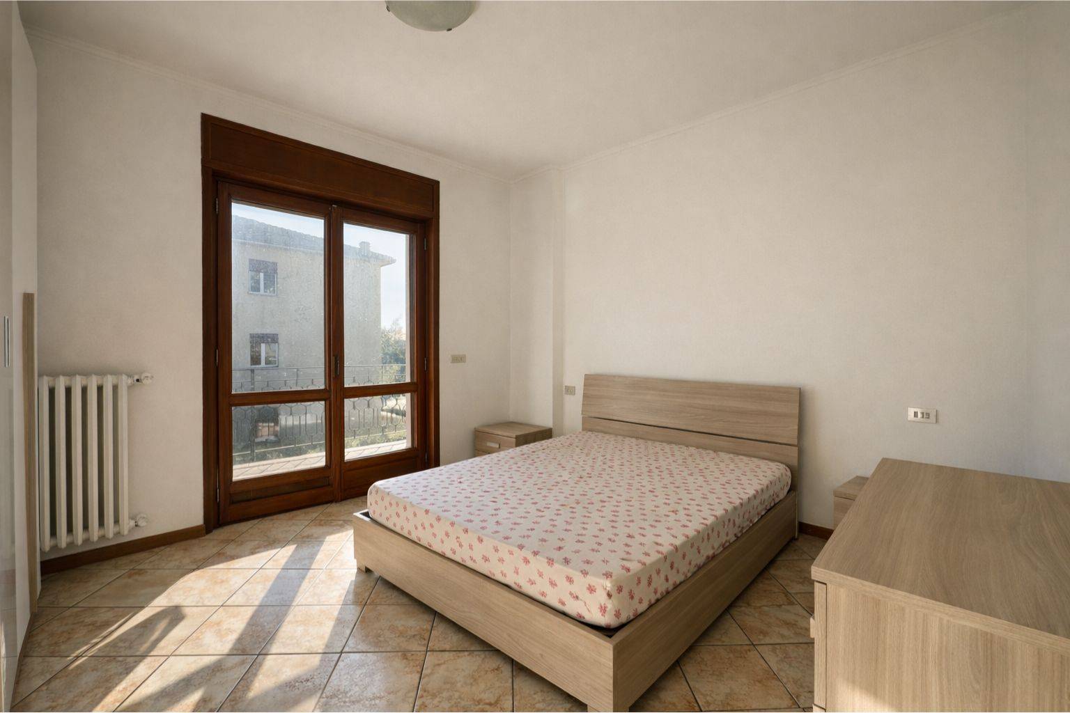 Il disimpegno conduce al bagno non finestrato ma con l'impianto di ricircolo dell'aria che permette il giusto ricircolo dell'aria anche quando si fa la doccia, il bagno è completo di box doccia, sanitari, lavello e lavatrice. Dal disimpegno si accede alla camera da letto matrimoniale di generose dimensioni con accesso al terrazzo che corre lungo tutto il lato della casa.