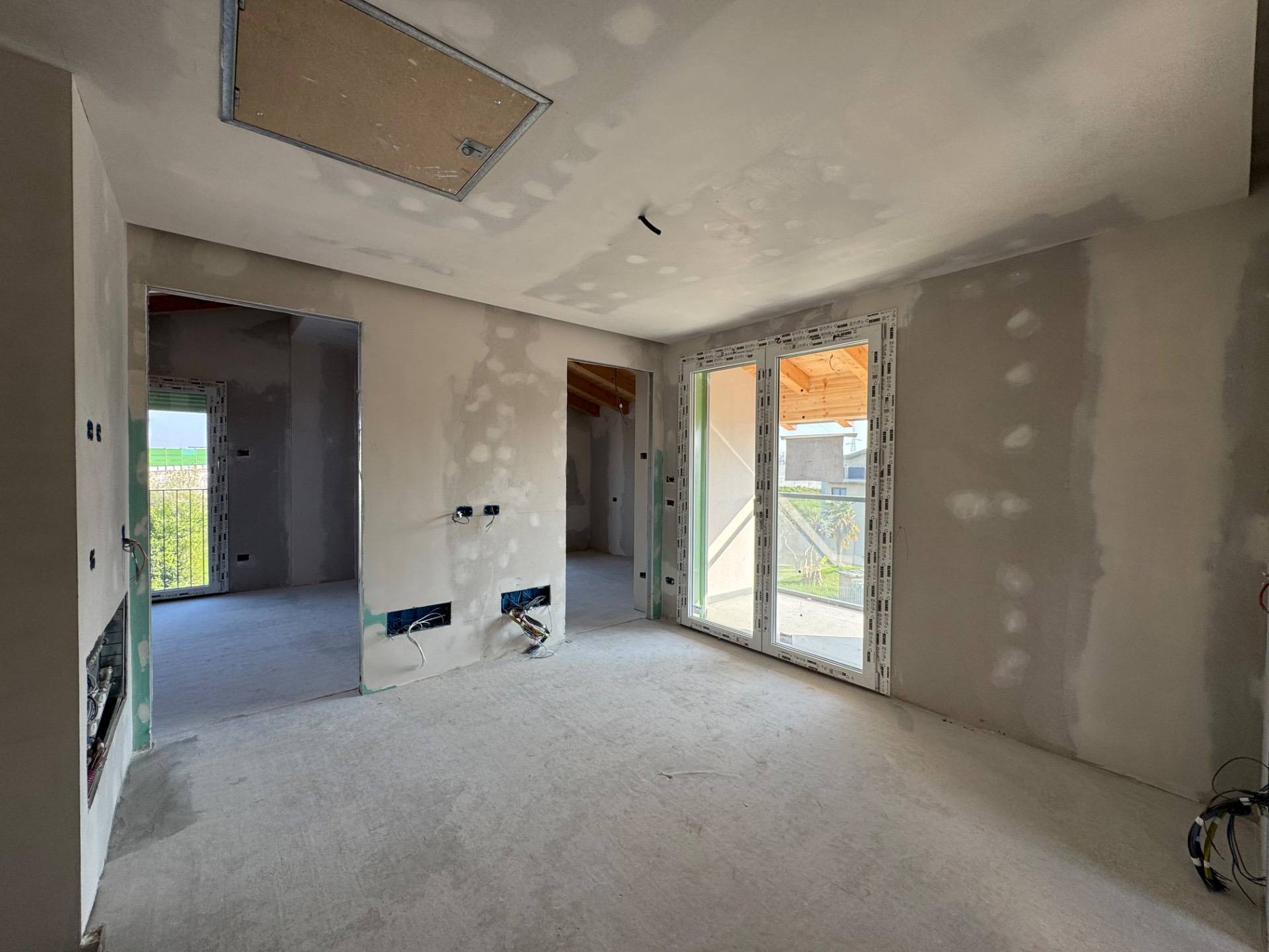 I serramenti sono in PVC con doppio vetro, sarà presente il videocitofono, il cappotto, il riscaldamento a pavimento e la pompa di calore per l'alimentazione dell'abitazione.
