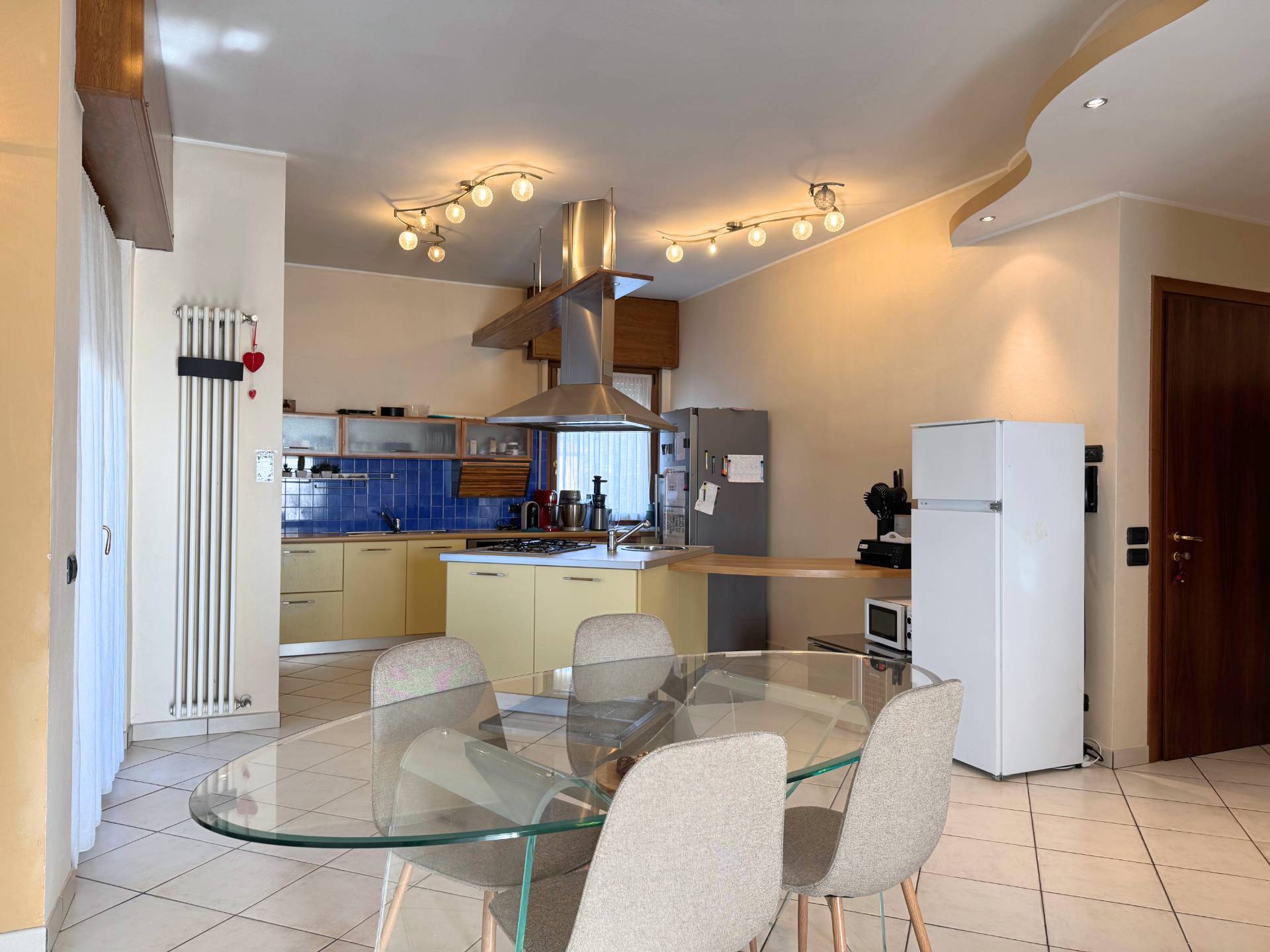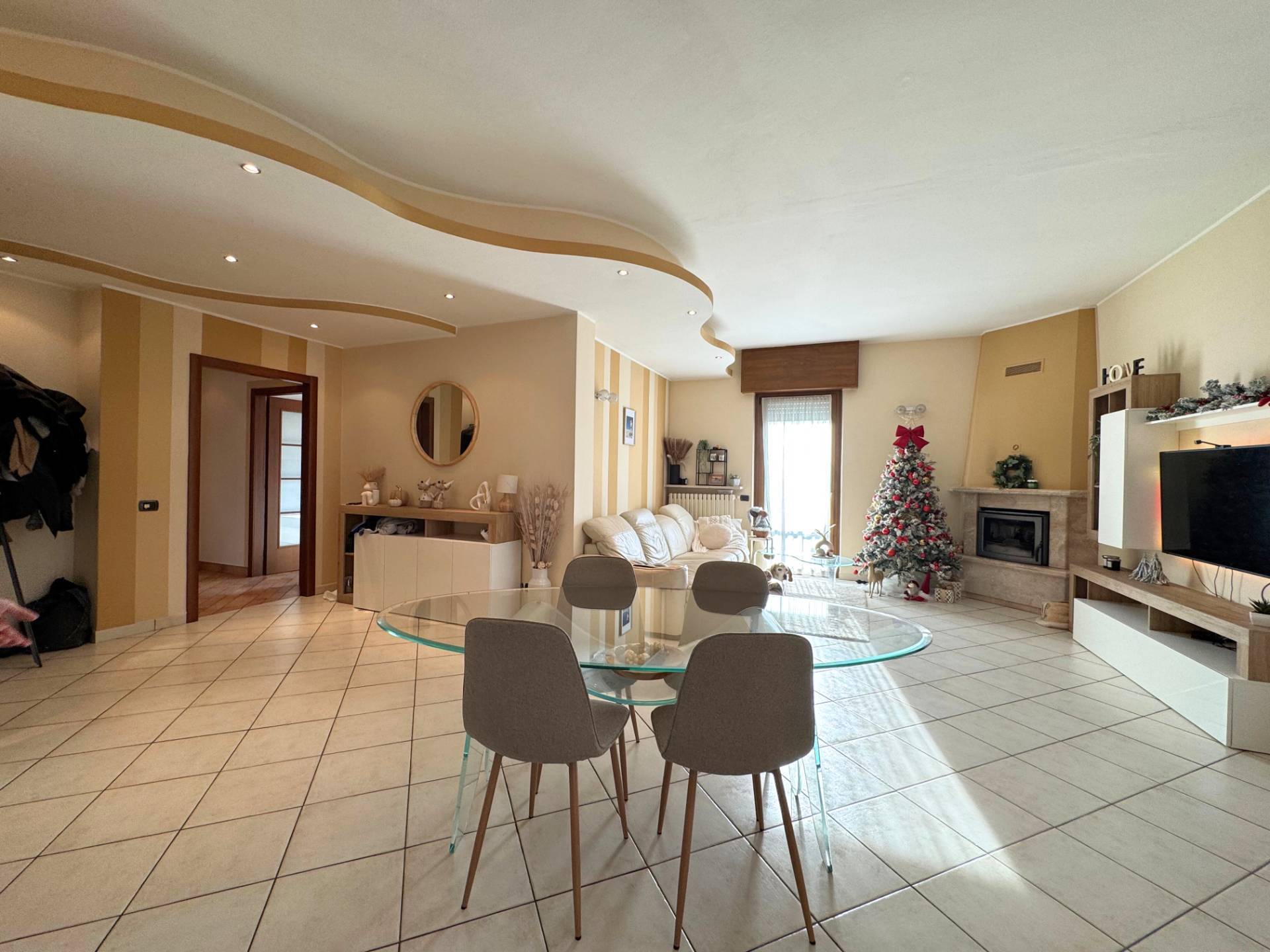 Si accede alla zona giorno composta da uno spazio Open-Space che mitiga la zona living e la cucina con isola centrale che domina l'ambiente. Dalla sala sono presenti gli accessi a due balconi con 3 lati liberi. Dalla sala il lungo corridoio accede alla zona notte composta da 3 ampie camere da letto.