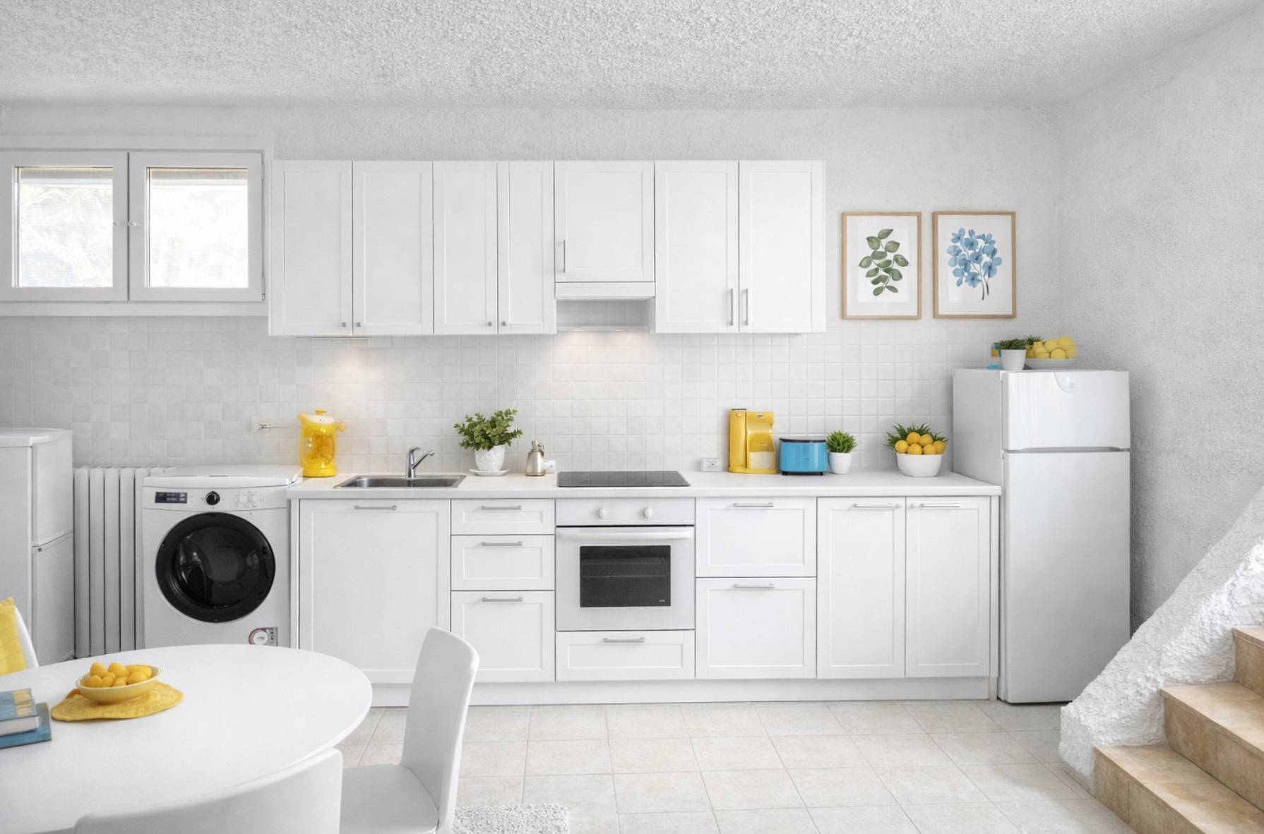 Al piano terra troviamo un ambiente pensato per la quotidianità: